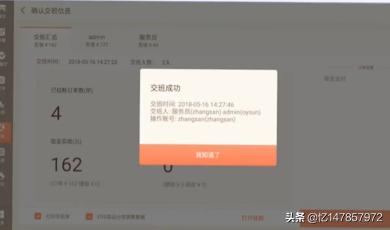 3、如显示交班成功,责是交班完成,确认交班后会打印交班单,用来核对数据。当前为结账的订单,不会计入到交班单中。